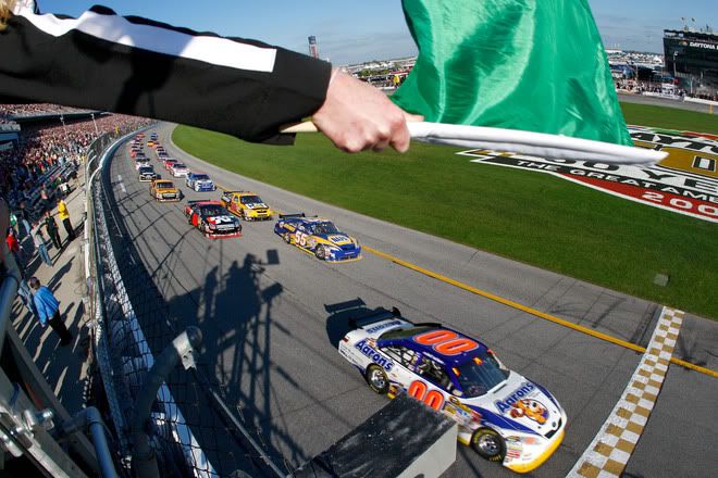 I've been fearing for AJ's job ever since Scott Speed became a staple in Team Red Bull's blog, so I feel that it's especially important that AJ make races and perform this year. He has the talent and the attitude - he really loves NASCAR and wants to make his team proud more than anything, and he tried as hard as he could to race his way in. I know he'll do well this season, but will it be enough? Chin up, AJ.Duel 2 was the nail-biter! Not only did DJ have to go for it, but the amount of inexperience in this field was astonishing. Everyone was expecting a big wreck.